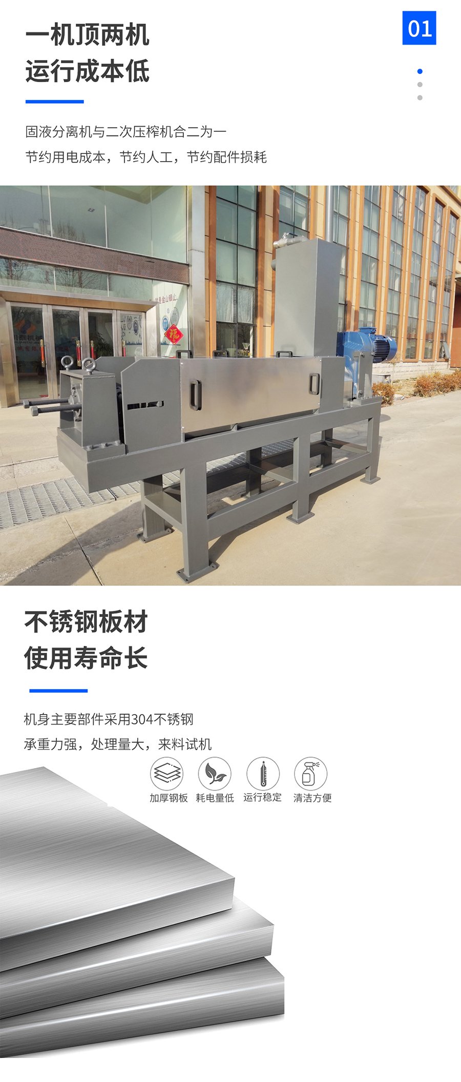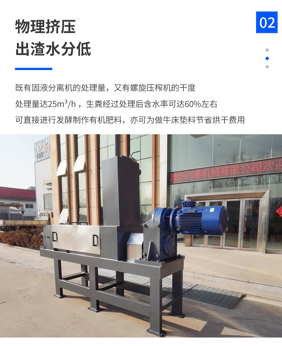 ?固體收集和液體排放?:分離出的固體部分被收集并送入儲(chǔ)存或后續(xù)處理設(shè)備,如發(fā)酵制成有機(jī)肥料;而液體部分則可能經(jīng)過進(jìn)一步處理或直接用于灌溉農(nóng)田等用途。